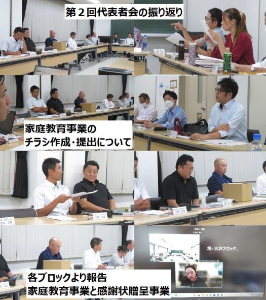 各ブロックからは、家庭教育事業と感謝状贈呈事業の進捗状況が報告され、そのほかにバナナペーパーを活用した卒業証書や交通安全指導について報告されたブロックもありました。